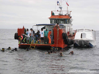 On 20th April 2008, wake up early and going to marina bay, Miri to join reef cleaning expedition at a dive named 'Miri Kenyalang Wreck' to mark Earth day. I feel disappoint because I can't went down underwater to help them out. The expedition using Landing Craft to carry almost 50 diver and crew. But we using other small wooden boat.